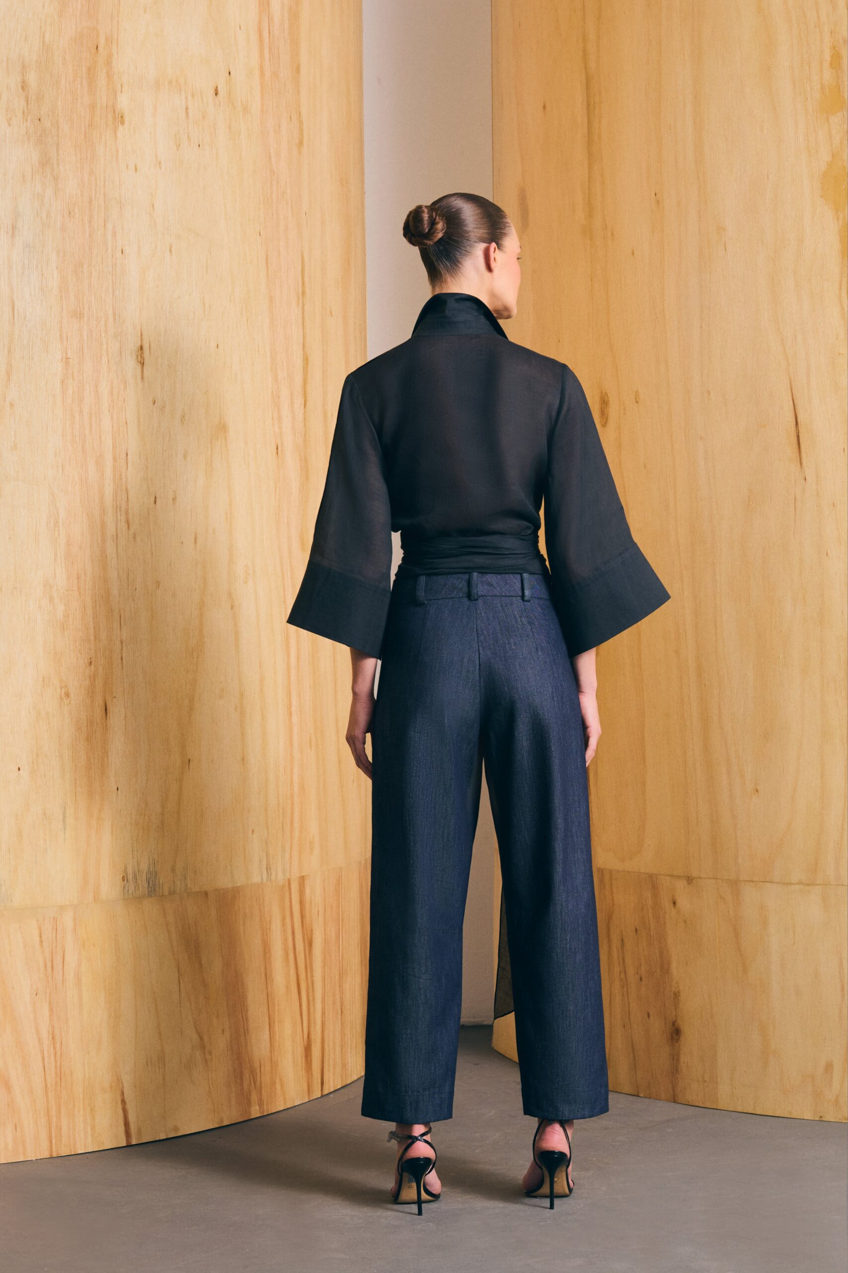 A calça jeans reta com detalhe em gorgurão preto nas laterais oferece uma proposta contemporânea e versátil para o guarda-roupa feminino. Com modelagem seca e estrutura levemente cenoura, ela valoriza a silhueta de forma elegante sem comprometer o conforto. O gorgurão nas laterais adiciona sofisticação e um toque utilitário à peça, tornando-a perfeita tanto para looks urbanos quanto para composições mais refinadas. Pode ser usada com camisa, regata ou tricôs leves, funcionando bem do dia à noite.
