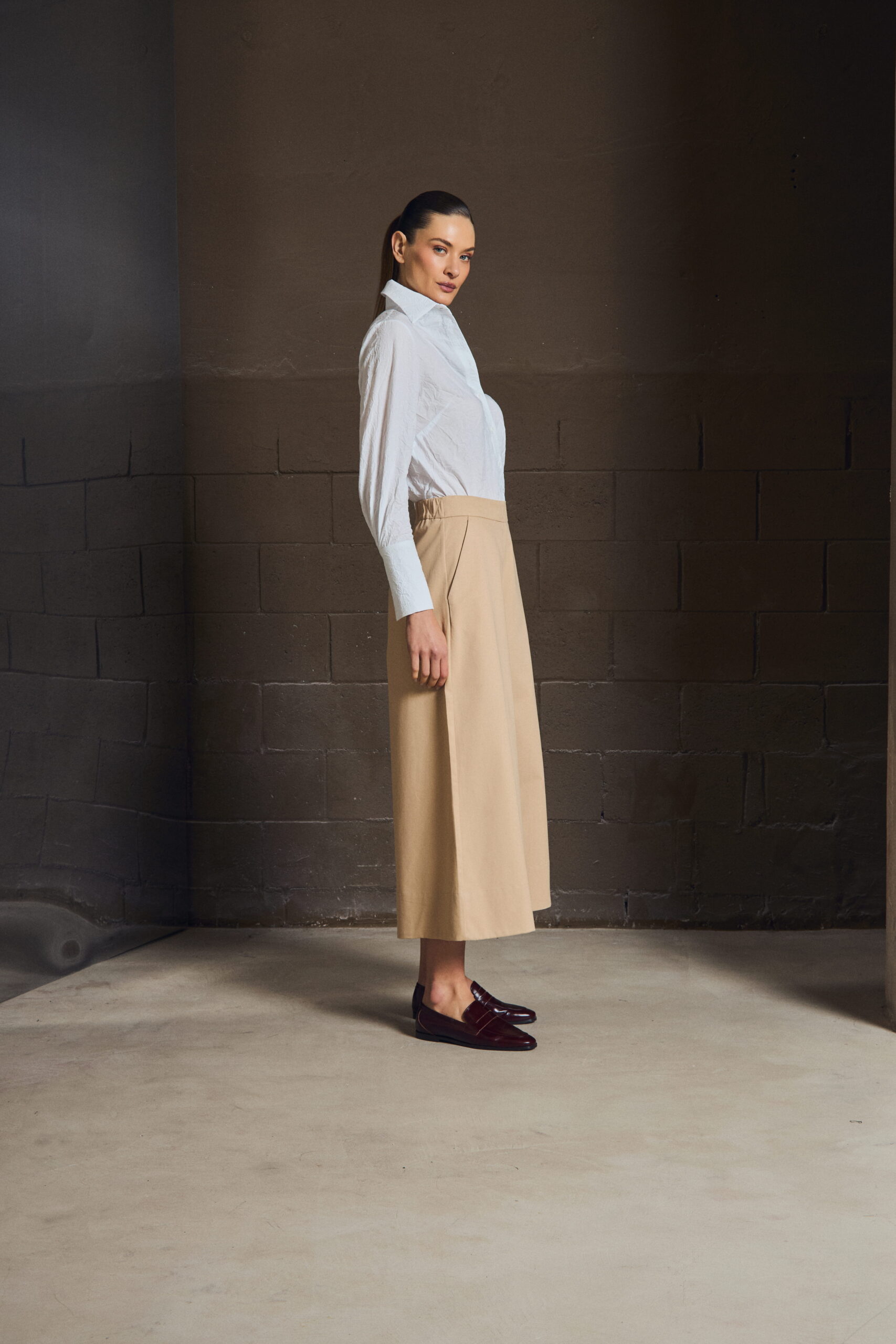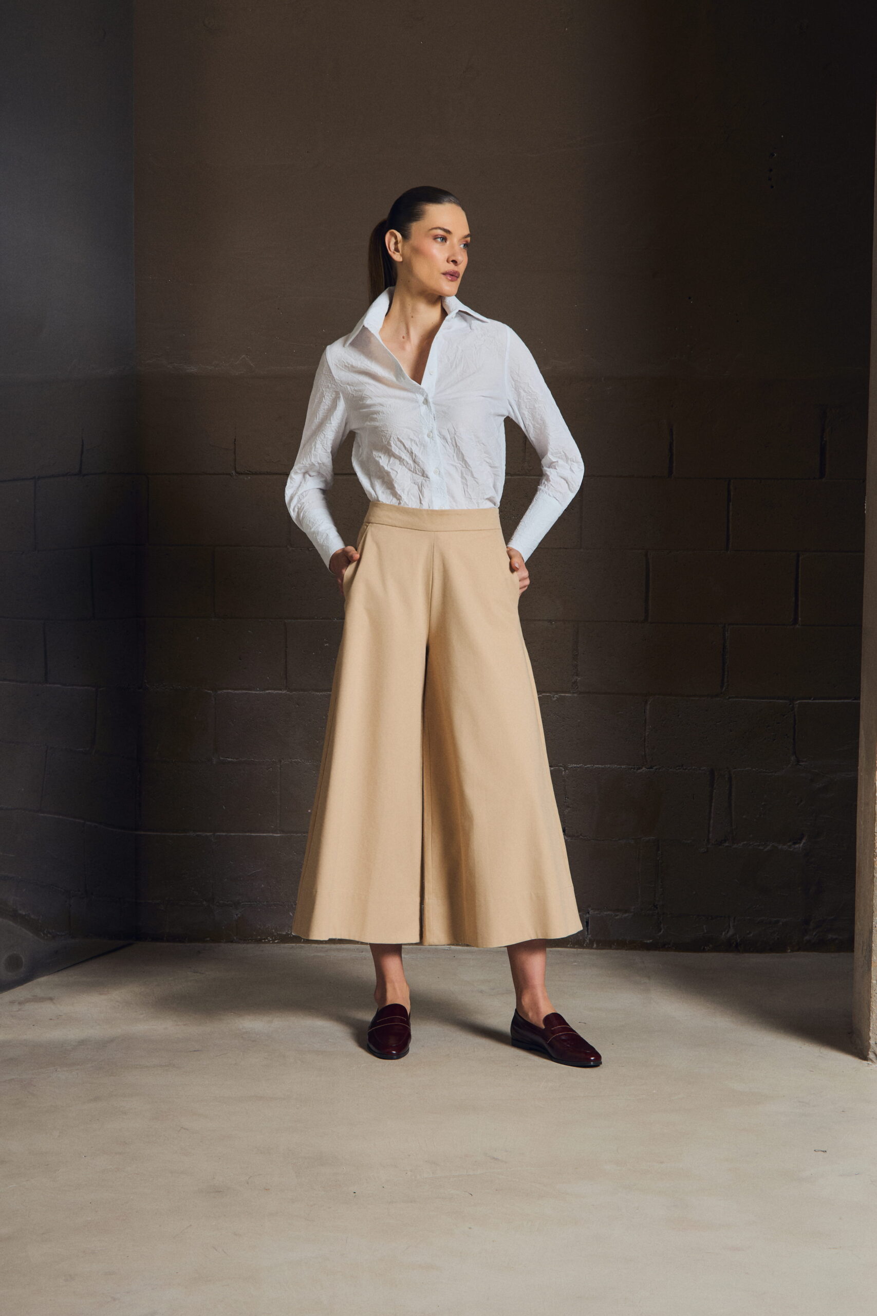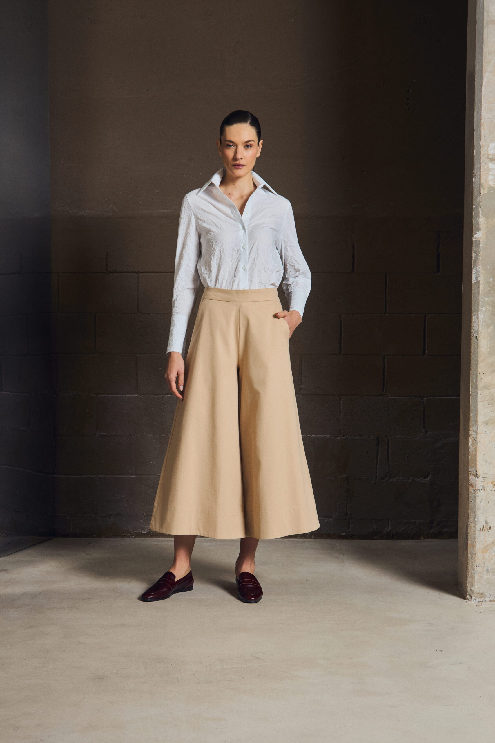 O cotton crush traz textura ao essencial, enquanto a modelagem limpa mantém a elegância atemporal. Uma peça que funciona em silêncio, mas transforma o conjunto.