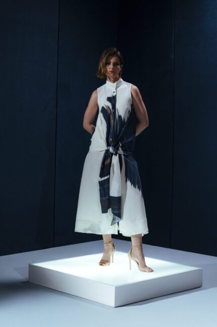Vestido jeans em 100% algodão, desenvolvido com foco em conforto, versatilidade e construção inteligente. O modelo possui alças finas e decote reto, com shape amplo e caimento fluido que acompanha o movimento do corpo sem marcar. Internamente, conta com sistema de amarração nos dois lados, permitindo diferentes formas de uso: amarrado dos dois lados para um leve franzido nas laterais, amarrado em apenas um lado para um efeito assimétrico ou totalmente solto, mantendo o shape mais reto e relaxado. Uma peça funcional e contemporânea, pensada para múltiplas leituras de estilo.